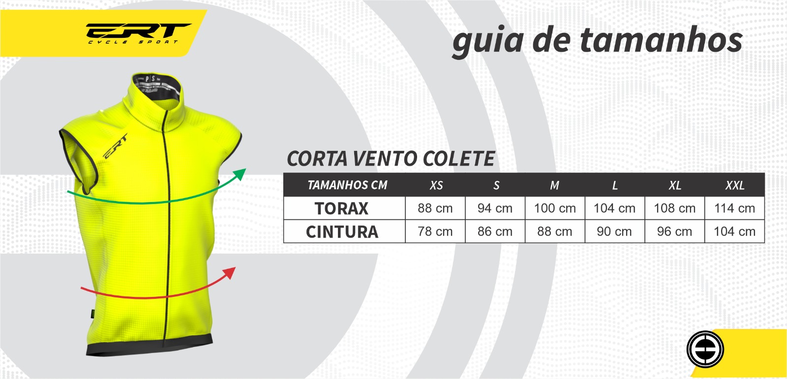 A funcionalidade do colete corta vento e evitar que as rajadas de vento entrem em contato direto com seu corpo, protegendo peitoral e garganta. A respirabilidade do tecido se encontra na parte traseira, onde ha uma tela de tecido furada. Leve e prático, o corta vento pode ser retirado e guardado no bolso da camisa se necessário.