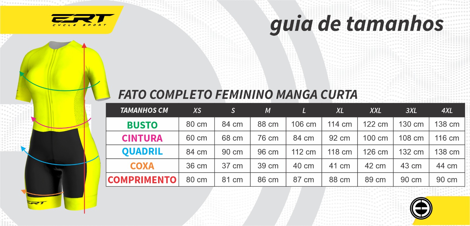 Os tecidos usados na confecção dos Fatos Femininos, tem os tratamentos Xtreme Dry, Bactericida e proteção UV +50, além de contarem com o renomado fio Lycra em sua construção.