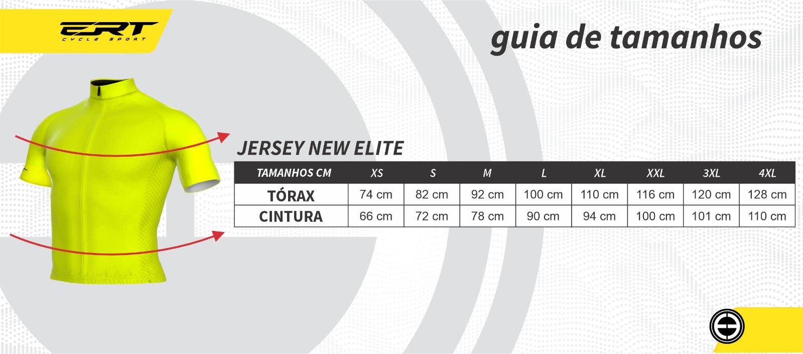 A Jersey NEW ELITE é um produto pensado e desenvolvido para atletas profissionais. A modelagem RACE padrão europeu garante conforto de performance nos mais altos níveis de competições. O design é mais FIT, as mangas e costas possuem bastante elastano, que modela a silhueta do corpo sem deixar sobras indesejáveis, garantindo aerodinâmica e menos atrito com o ar. O conjunto elite é o mais usado pelas maiores equipes de estrada e btt.