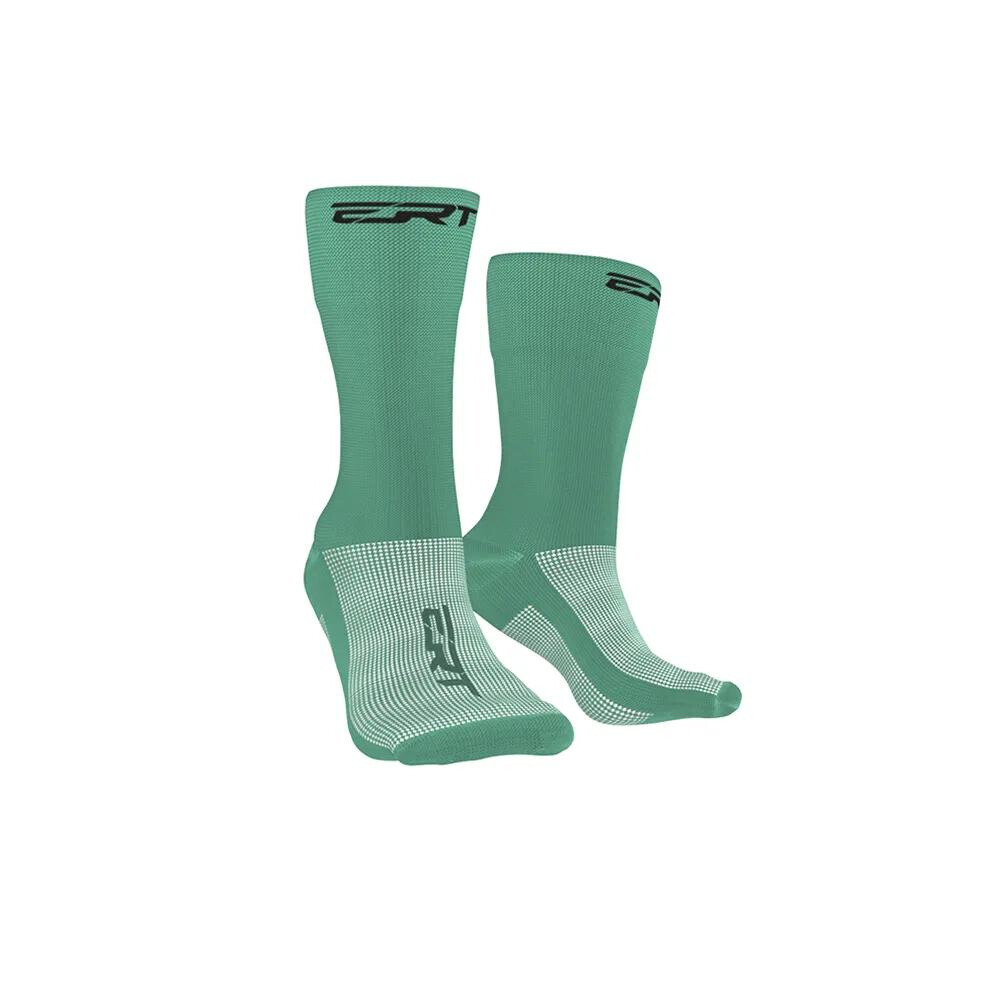 Meias verdes com logo ERT e detalhes brancos